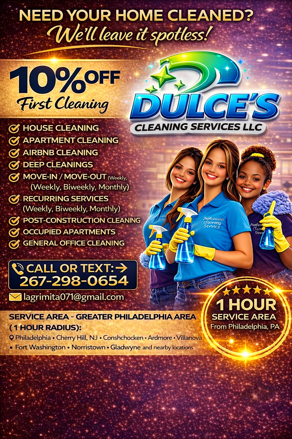 On-time, detailed, and professional cleaning — DULCE’S CLEANING SERVICE LLC.